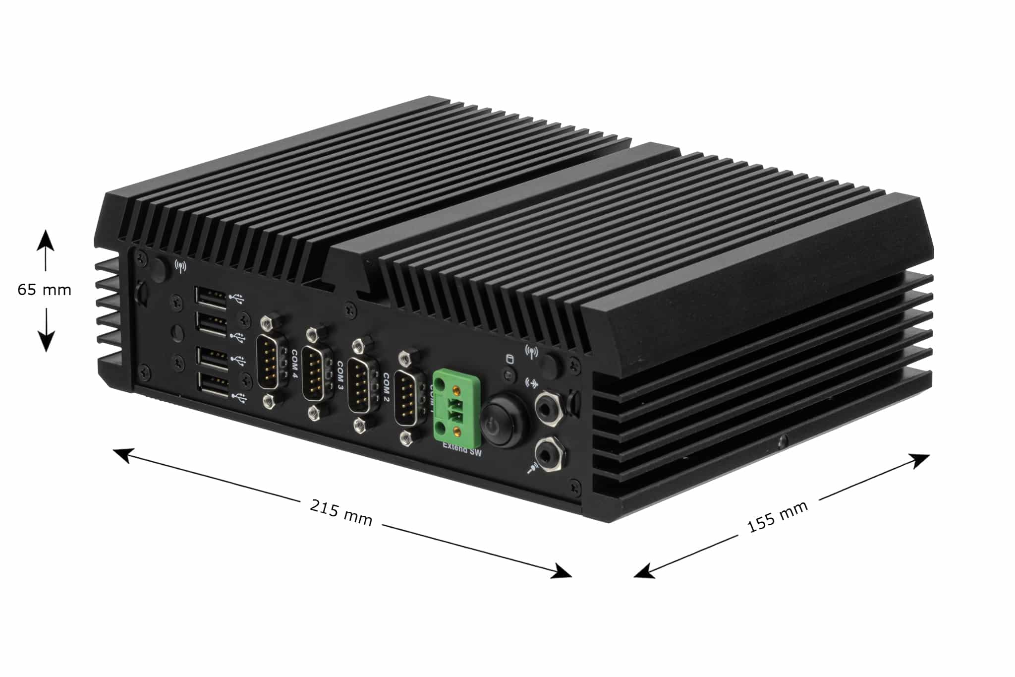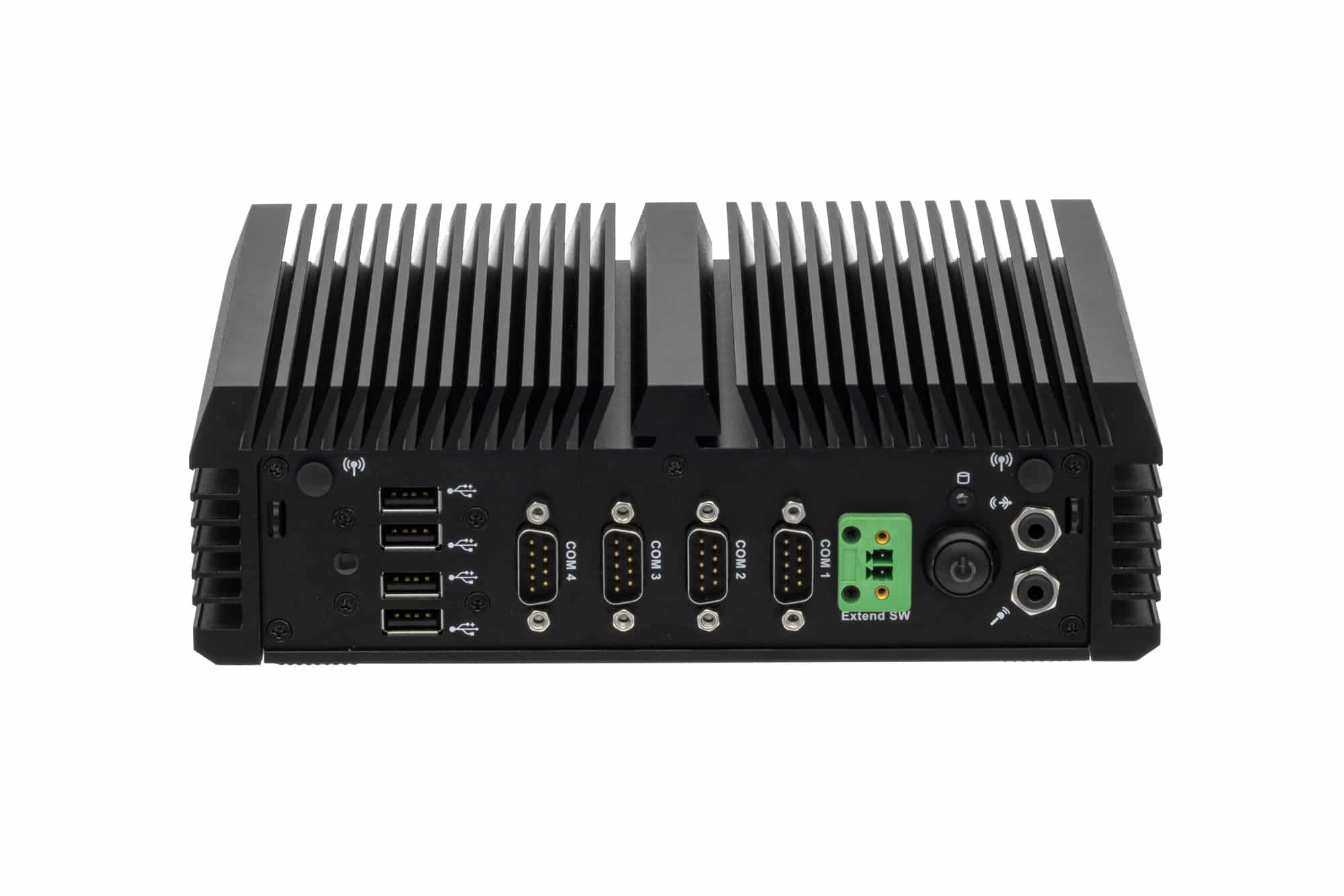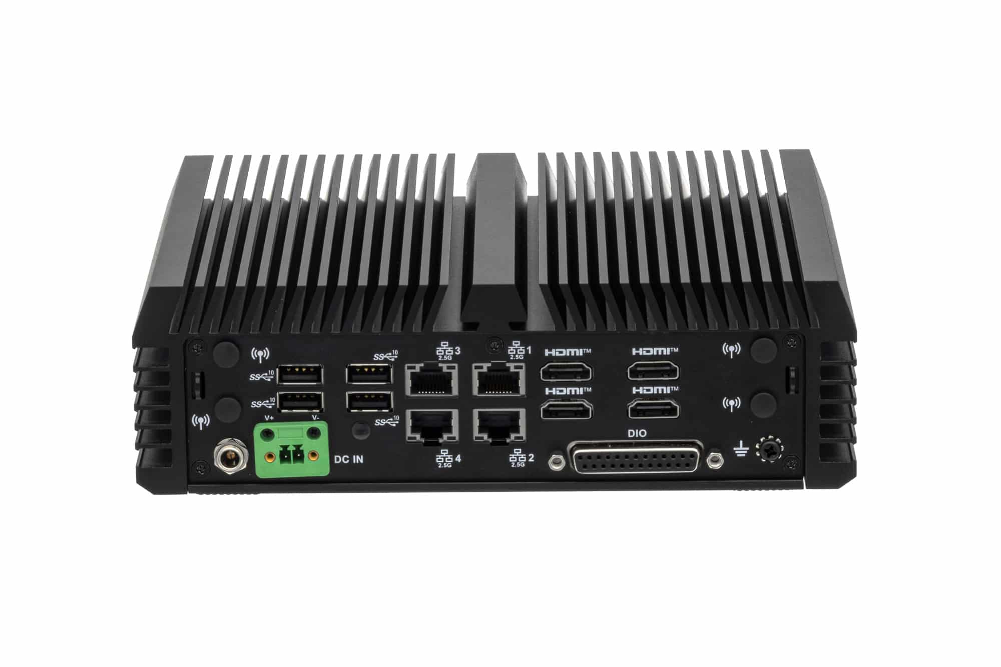 Four HDMI 2.0 ports allow up to four Full HD or UHD displays to be operated simultaneously. In addition, eight USB ports, four LAN ports and four COM interfaces are available for a wide range of industrial peripherals.